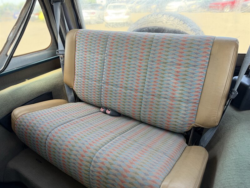 1997 Jeep Wrangler SE — Exterior verde, interior en tela color beige — motor 2.0L atmosférico I4 OHV de 8 válvulas. El equipo de fábrica incluye tracción 4x4 con caja de transferencia de baja, toldo blando y puertas removibles, asientos en tela beige, radio básica AM/FM con casete, controles de climatización manuales (calefacción y A/C cuando está equipado), llantas de acero, dirección asistida y las características de seguridad estándar de la época. Menos de 192,000 millas (promedio inferior a 7,000 millas/año), excelente estado general, 17 MPG ciudad / 19 MPG carretera, CARFAX limpio.