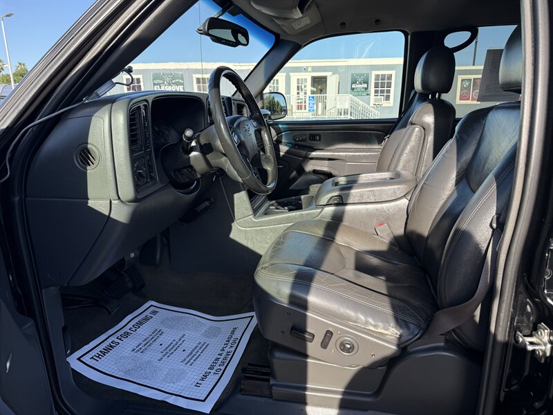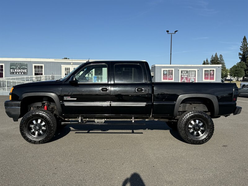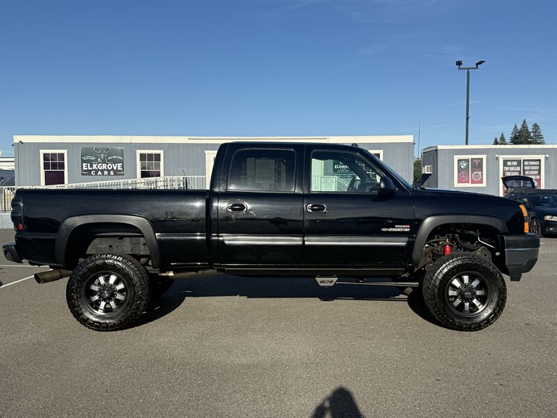 2004 Chevrolet Silverado 2500 Crew Cab with the Duramax 6.6L Turbo Diesel V8 (300 hp, 520 ft-lbs) paired with the factory Allison 5-speed automatic transmission and heavy-duty cooling/towing components. Factory features include four full-size doors with seating for up to six, gray leather seats, power windows/locks/mirrors, power driver seat, cruise control, air conditioning, tilt steering, AM/FM radio with CD player, front dual airbags and four-wheel ABS, plus factory trailer wiring and towing hardware. Exterior is black; vehicle is in excellent overall condition, under 209,000 miles (averaging <10,000 miles/year) and has a clean CARFAX.