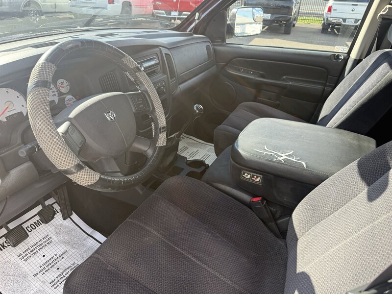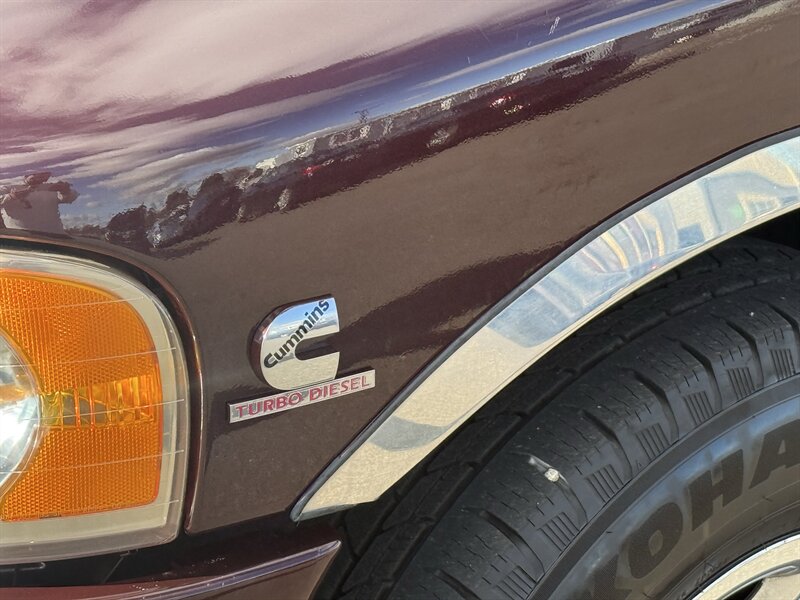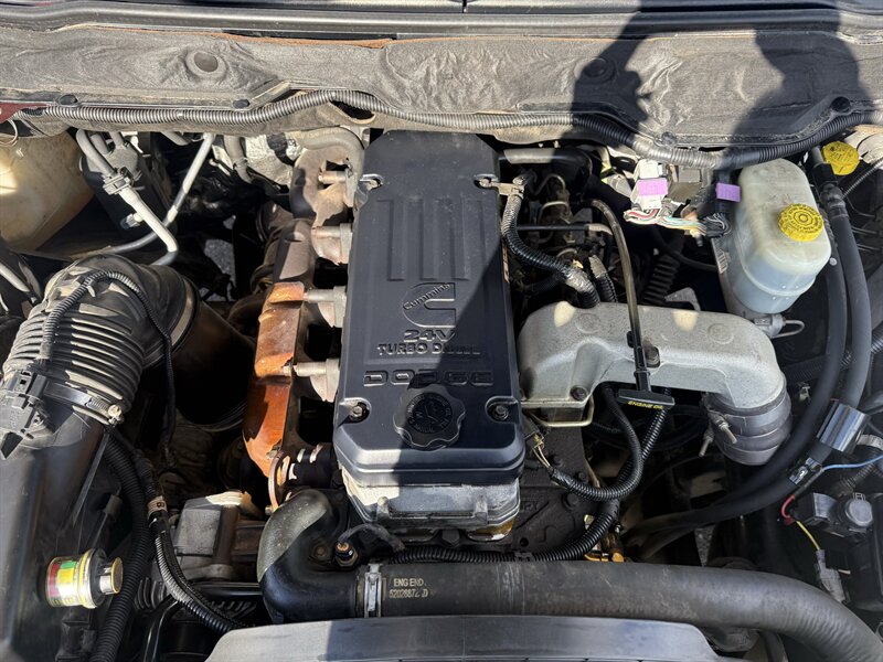 2004 Dodge Ram 2500 SLT Quad Cab with the Cummins 5.9L Turbo Diesel I6 (305 hp, 555 lb-ft), finished in Deep Molten Red Pearlcoat with a Dark Slate Gray interior — excellent overall condition. The SLT came from the factory with four-door Quad Cab seating (folding center seat/armrest in front), durable cloth upholstery, power windows and door locks, remote keyless entry, air conditioning, cruise control, tilt steering, full instrumentation with tachometer, AM/FM stereo with CD capability, chrome exterior trim and bumpers, heavy-duty suspension and cooling, four-wheel anti-lock brakes, standard towing prep and hitch wiring, and other factory convenience and safety equipment typical for the trim.