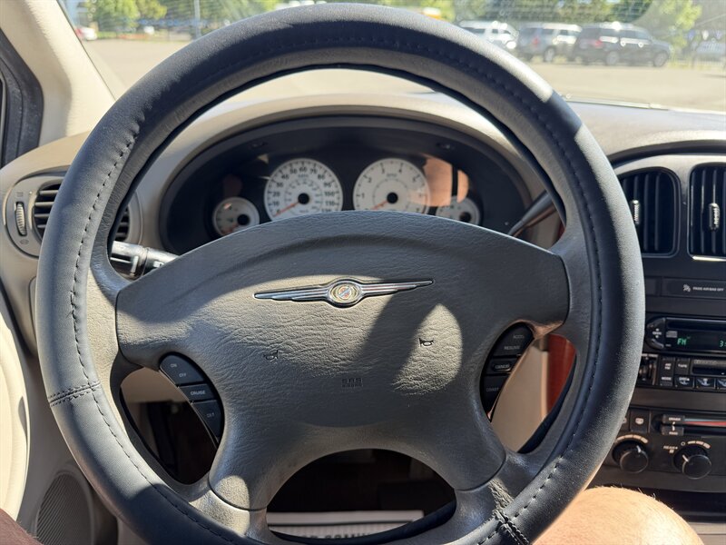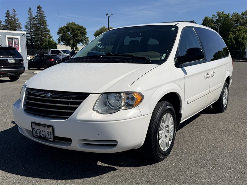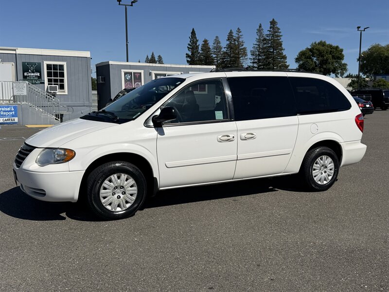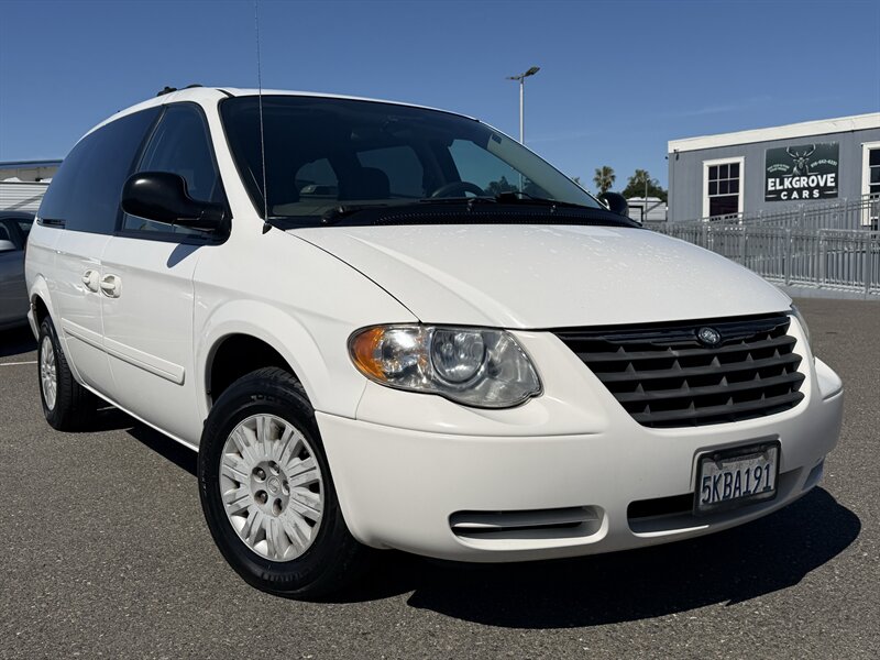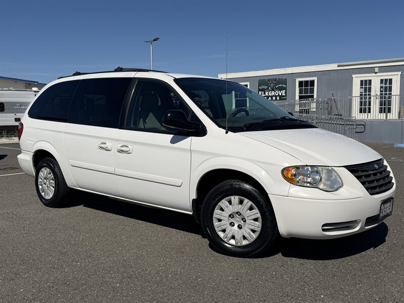 2005 Chrysler Town & Country LX — White exterior, Gray cloth interior. Powered by a 3.3L V6 with 180 hp and 210 lb-ft of torque. Factory features include seating for seven with fold-flat second-row Stow ’n Go seating and a 60/40 third row, cloth upholstery, air conditioning with rear HVAC controls, AM/FM stereo with CD player, power windows and locks, remote keyless entry, cruise control, tilt steering, roof rails and privacy glass. Safety equipment includes dual front airbags, side-curtain airbags and ABS. Below 133,000 miles (averaging under 7,000 miles/year), EPA-rated 17 MPG city / 24 MPG highway. Excellent overall condition, clean CARFAX, one owner.