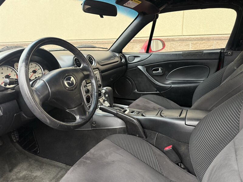 The MX-5 Miata LS features a well-appointed black interior, complete with supportive bucket seats, a leather-wrapped steering wheel, and a premium sound system for an enjoyable ride. Factory options include air conditioning, power windows, and a remote keyless entry system, ensuring convenience and comfort. The lightweight design and rear-wheel drive enhance its agility, making it a true joy to drive. Experience the thrill of open-top motoring with this iconic sports car.