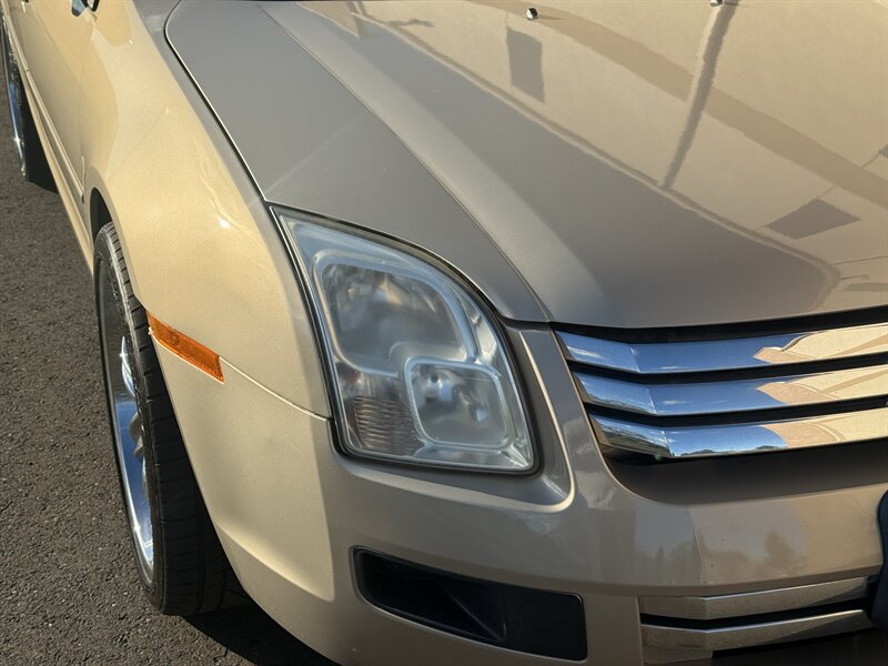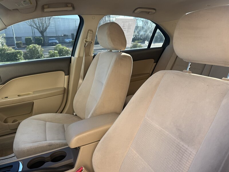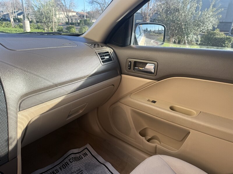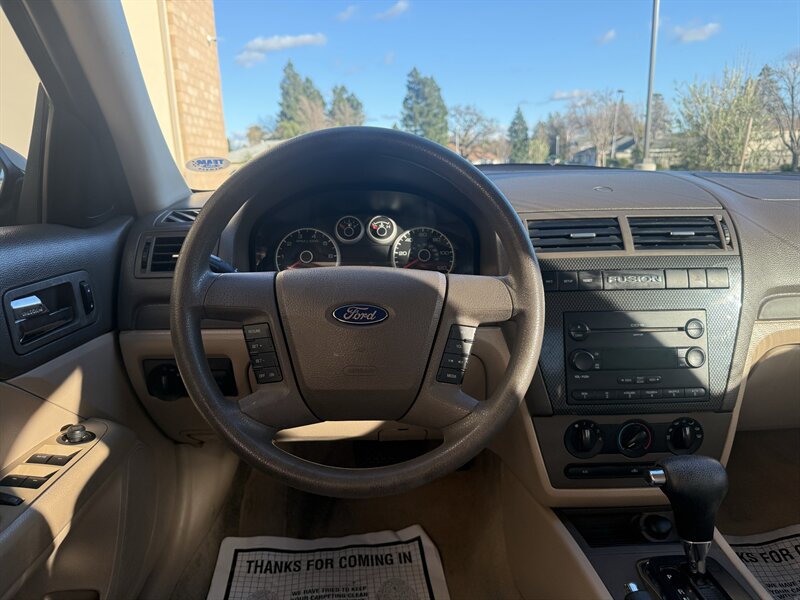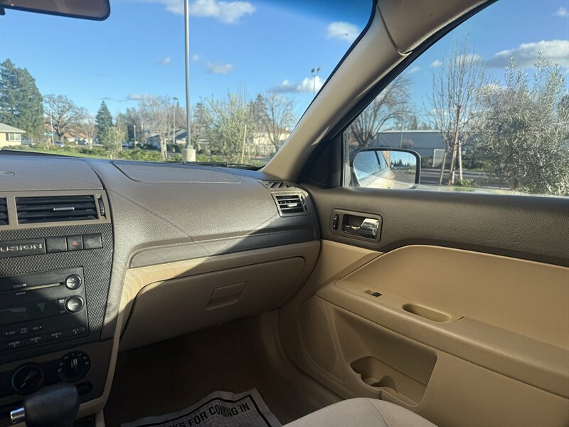 2006 Ford Fusion V6 SE — powered by the factory 3.0L naturally aspirated V6 (DOHC, 24-valve) paired with the original automatic transmission and front-wheel drive. Finished in Charcoal Beige Metallic with Camel cloth interior, this Fusion is in excellent overall condition, under 60,000 miles (averaging <3,000 miles/year) and comes with a clean CARFAX. Factory equipment includes anti-lock 4-wheel disc brakes, traction control, dual front airbags with front side airbags, child seat LATCH anchors, power windows and door locks with remote keyless entry, cruise control, tilt steering, manual air conditioning, AM/FM stereo with CD/MP3 capability, split-folding rear seat, and alloy wheels. Clean, well-maintained example with the original standard features.