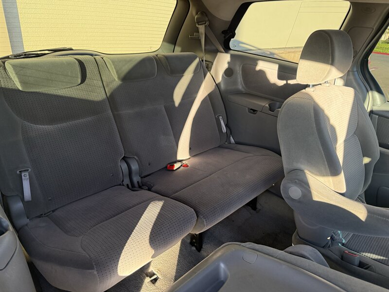 2006 Toyota Sienna LE — Silver exterior, Gray cloth interior. This Sienna is a seven-passenger configuration and is in excellent overall condition. It is powered by a smooth, naturally aspirated 3.0L V6 with double overhead cams (DOHC) and 24 valves, paired with an automatic transmission. The vehicle has good mileage, under 198,000 miles (averaging less than 10,000 miles per year) and EPA figures of approximately 17 MPG city and 24 MPG highway.