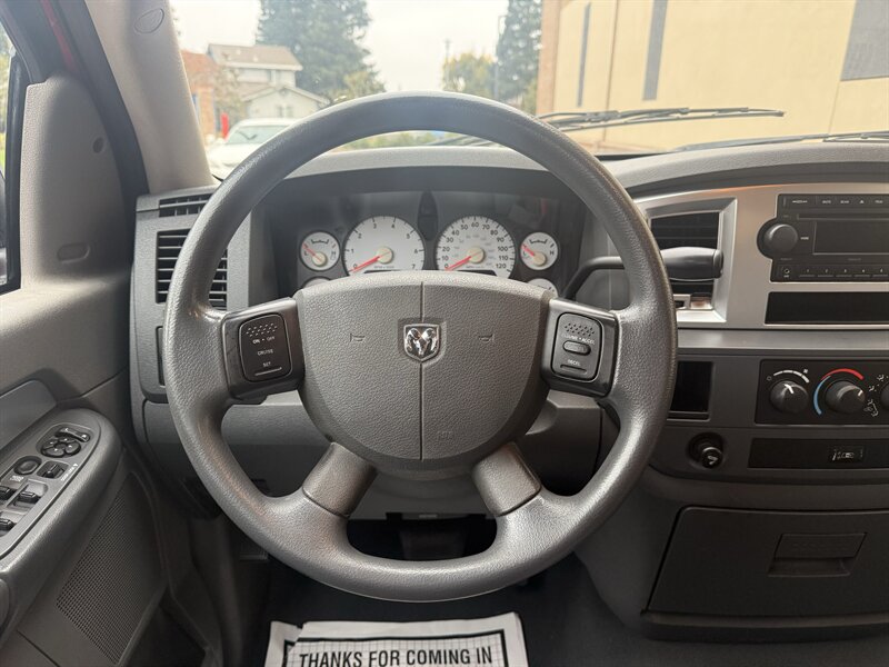 Experience the rugged reliability of the 2008 Dodge Ram 1500 SLT, featuring a powerful 4.7L V8 engine that delivers 310 horsepower and 330 ft-lbs of torque. Dressed in a striking Flame Red Clear Coat exterior, this truck stands out on the road while offering a comfortable Medium Slate Gray interior. Factory default features include power windows and locks, keyless entry, cruise control, and a premium audio system, ensuring both convenience and enjoyment during your drives. With an EPA-estimated fuel economy of 13 MPG in the city and 17 MPG on the highway, this Ram 1500 combines performance with practicality. This vehicle is in excellent overall condition and comes with a clean CARFAX report for peace of mind.