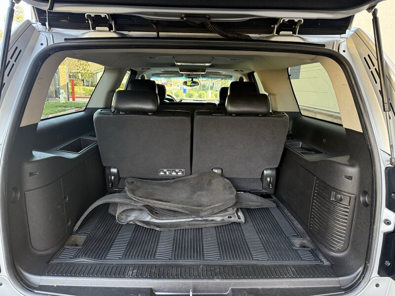 - Three-row seating configured to accommodate passengers and cargo — second- and third-row seats fold to expand cargo area for large loads.
