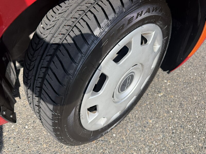 - Exterior: Bright Red factory paint, 15-inch steel wheels with covers, body-color bumpers, chrome-accented grille, halogen headlights, and intermittent windshield wipers. Compact hatchback design with rear hatch for access to the cargo area.