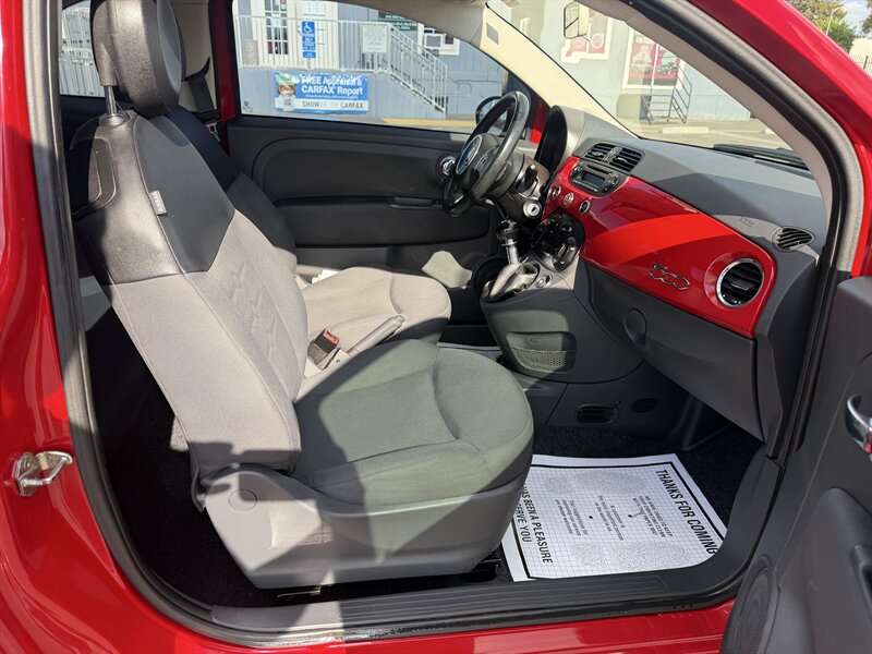 This description reflects the factory-default equipment for the 2012 FIAT 500 Pop. Specific factory options and regional variations may apply; please request the vehicle’s option list or the CARFAX report for full details.