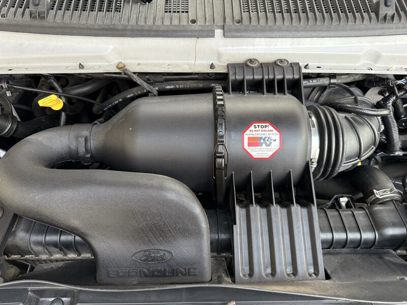 Introducing the 2012 Ford E-250, a reliable and versatile van designed for both work and personal use. Powered by a Triton 5.4L Flex Fuel V8 engine, this vehicle delivers 255 horsepower and 350 ft-lbs of torque, ensuring robust performance for various applications. The exterior is finished in Oxford White, providing a clean and professional appearance, while the Medium Flint interior offers comfort and practicality.