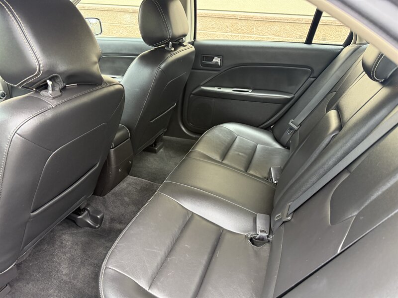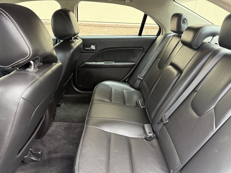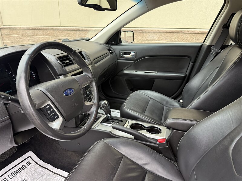 Factory default features include premium cloth seating, a six-way power driver's seat, dual-zone automatic climate control, and an advanced audio system with a CD player and auxiliary input. Additional conveniences include keyless entry, power windows and locks, and a spacious trunk for ample storage. With its combination of performance, comfort, and excellent overall condition, this Ford Fusion SEL is a solid choice for any driver.