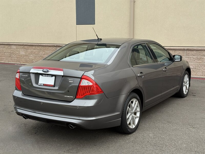 Introducing the 2012 Ford Fusion SEL, a well-maintained sedan featuring a powerful 3.0L Flex Fuel V6 engine that delivers 240 horsepower and 223 ft-lbs of torque. This model is finished in a sleek Sterling Gray Metallic exterior, complemented by a stylish Charcoal Black interior. With mileage below 140,000, averaging less than 10,000 miles per year, this Fusion offers reliability and efficiency.