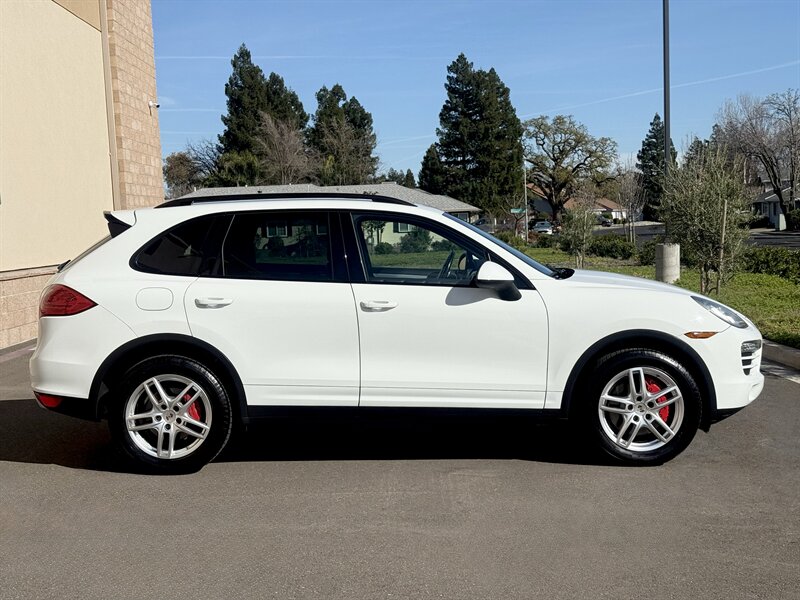 2012 Porsche Cayenne Tiptronic with a 3.6L V6 producing 300 hp and 295 lb-ft of torque. Exterior: White; Interior: Black leather. Below 149,000 miles (averaging under 10,000 miles/year), excellent overall condition, clean CARFAX. Factory equipment typically includes Tiptronic automatic transmission, permanent all-wheel drive, Porsche Stability Management (PSM), ABS, multiple airbags, power-adjustable front seats with leather upholstery, dual-zone automatic climate control, cruise control, power windows/locks, alloy wheels, fog lights, steering-wheel controls, and a factory audio system with CD/MP3 and Bluetooth connectivity (some features may vary by trim or options).