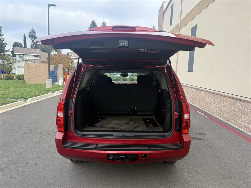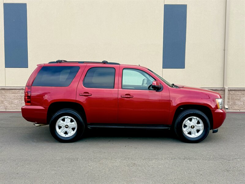 2013 Chevrolet Tahoe LS — powered by a Vortec Iron Block 5.3L FlexFuel V8 (320 hp, 335 ft-lb) paired with a smooth 6-speed automatic transmission. Factory-equipped with comfortable black cloth seating for up to eight, folding second/third-row seats for flexible cargo space, power windows and locks, remote keyless entry, cruise control, tilt steering and steering-wheel audio controls. Infotainment includes AM/FM/CD, auxiliary/USB inputs and Bluetooth hands-free calling, plus OnStar support. Safety features include ABS, stability/traction control and multiple airbags for all three rows. Exterior paint: Red; Interior: Black cloth.