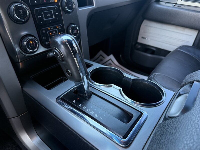 2013 Ford F-150 FX4 — Silver exterior, Black leather interior, in excellent overall condition. Powered by a 5.0L Flex-Fuel V8 (360 hp, 380 lb-ft) mated to a 6-speed automatic transmission and FX4 off-road 4x4 equipment. Factory features include: off-road-tuned suspension with skid protection and hill descent control; power windows and locks, remote keyless entry, cruise control and steering-wheel-mounted controls; AM/FM/CD audio with auxiliary input and Bluetooth/Sync connectivity; power-adjustable front seats with leather trim; air conditioning; alloy wheels; ABS, traction and stability control, multiple airbags and tire-pressure monitoring.