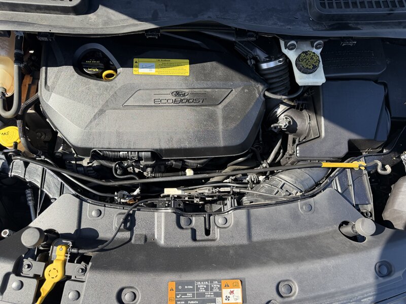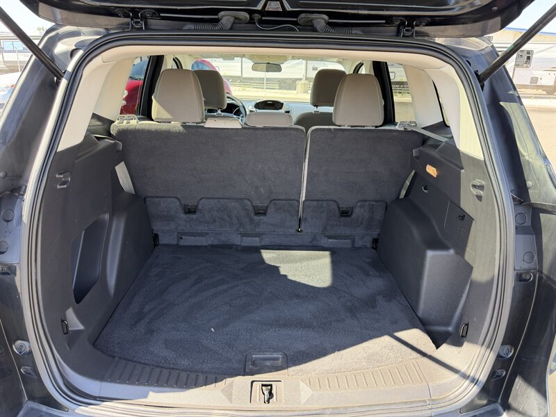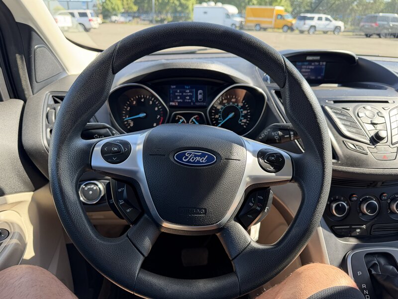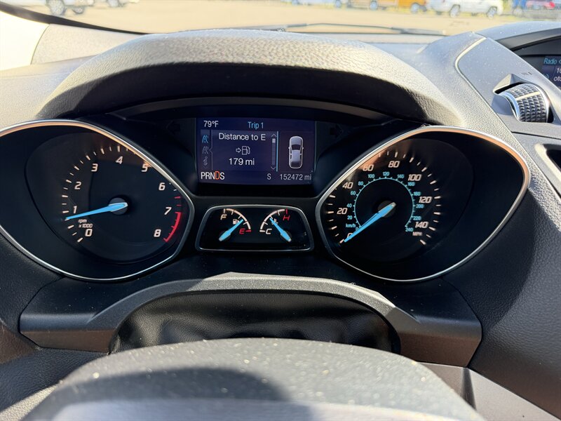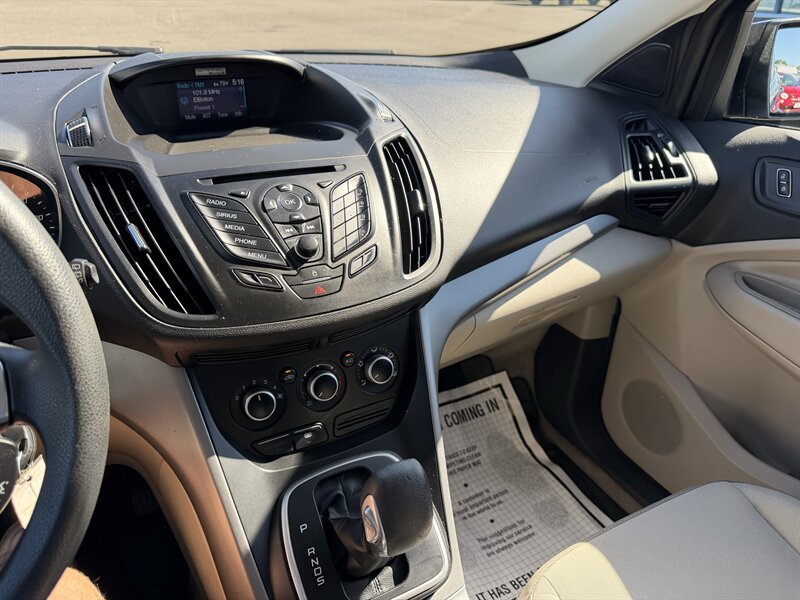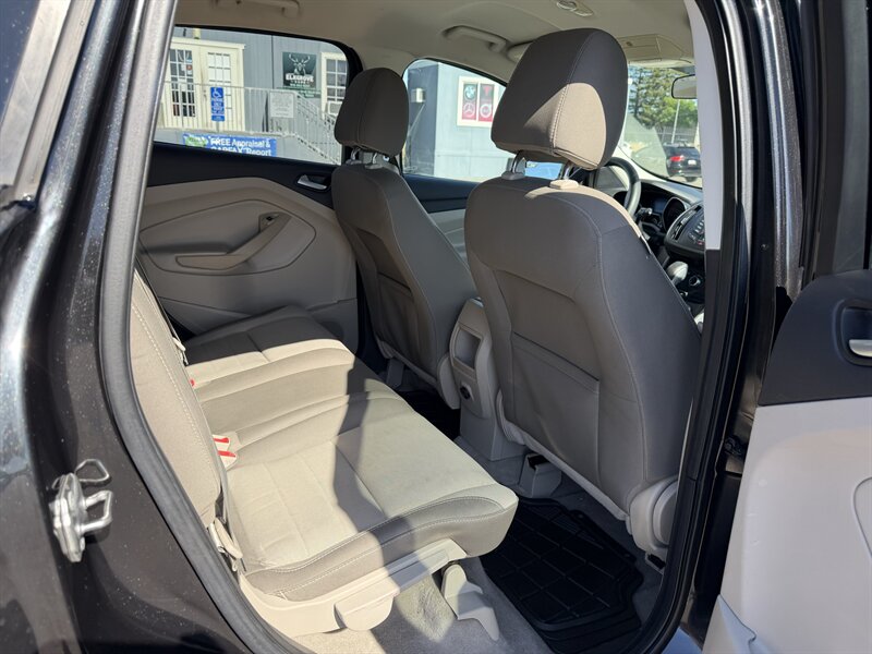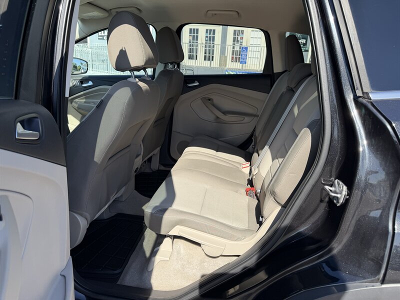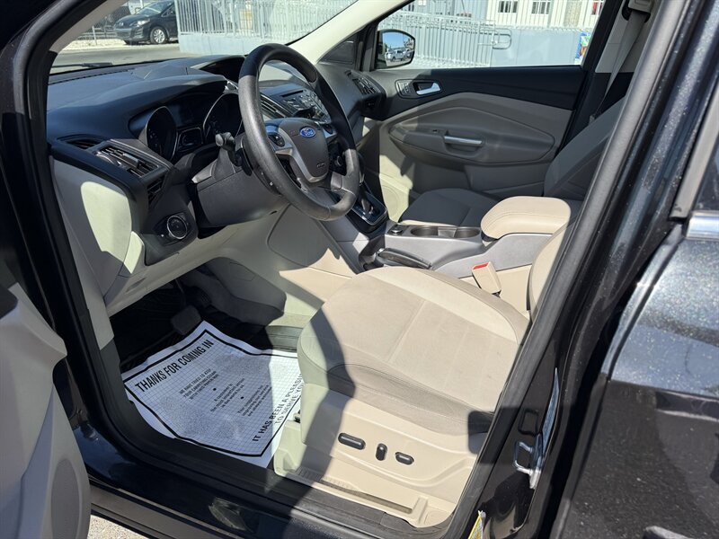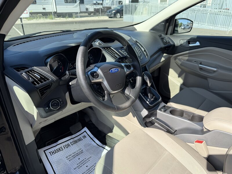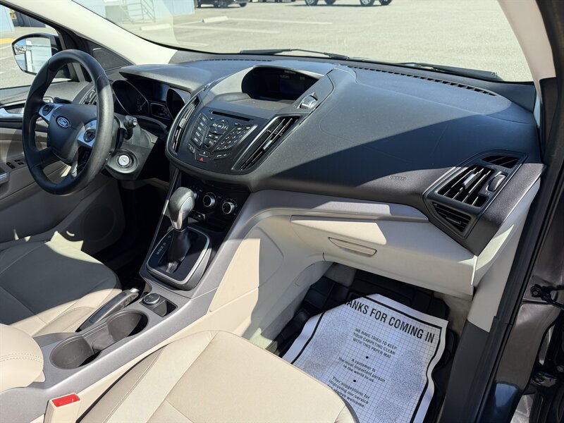 2014 Ford Escape SE — Black exterior, Gray cloth interior. Powered by an EcoBoost 1.6L Turbo I4 (178 hp, 184 lb-ft) paired with a 6-speed automatic; EPA-rated 23 MPG city / 32 MPG highway. Factory equipment includes Ford SYNC with Bluetooth and auxiliary input, AM/FM/CD audio, power windows/locks/mirrors, remote keyless entry, cruise control, cloth seating with 60/40 split-folding rear seat, air conditioning, alloy wheels, and safety systems such as ABS, stability and traction control, multiple airbags, and tire pressure monitoring. Vehicle is in excellent overall condition and has a clean CARFAX.