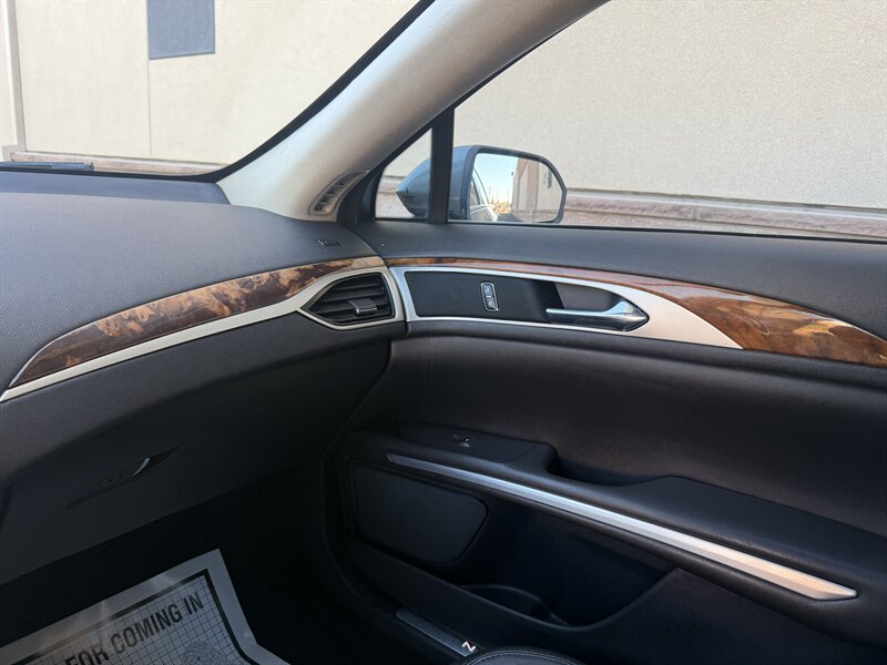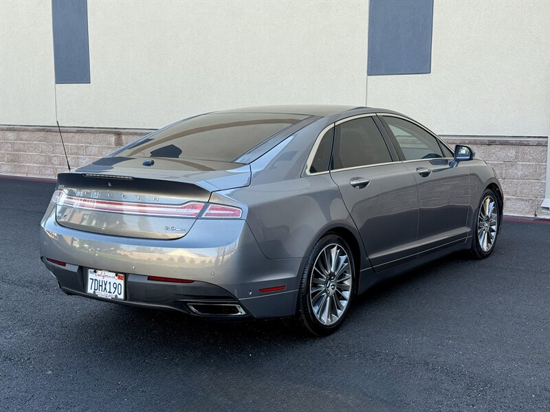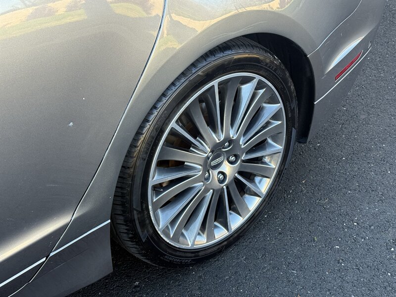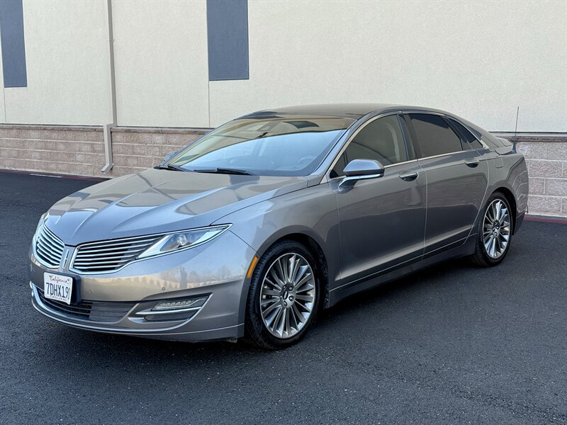 2014 Lincoln MKZ/Zephyr in Ingot Silver Metallic with a Charcoal Black interior; vehicle is in excellent overall condition and has a clean CARFAX. Powered by the EcoBoost 2.0L Turbo I4 producing 240 hp and 270 lb-ft, paired with a 6-speed automatic transmission with SelectShift (front-wheel drive configuration). Factory-equipped features include dual-zone automatic climate control, power windows and door locks, remote keyless entry, power-adjustable front seats with leather-trimmed upholstery, and steering-wheel-mounted audio and cruise controls. Infotainment and convenience items include the MyLincoln Touch interface with touchscreen, Bluetooth hands-free phone and audio streaming, USB and auxiliary inputs, and a premium audio system. Standard safety and driving aids include anti-lock brakes, electronic stability and traction control, multiple airbags, and a tire pressure monitoring system. Overall this MKZ delivers a well-appointed, comfortable ride with the performance and refinement expected from Lincoln.