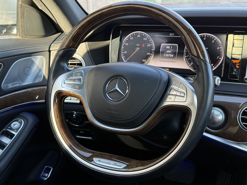 This 2014 Mercedes-Benz S 550 comes with a powerful 4.7L Twin Turbo V8 engine, delivering 449hp and 516ft. lbs. of torque. The exterior is finished in a sleek Iridium Silver Metallic, complemented by a Black interior. With under 111,000 miles on the odometer, averaging less than 10,000 miles annually, this vehicle is in excellent overall condition. Standard factory features include advanced technology, luxurious amenities, and top-notch safety systems.