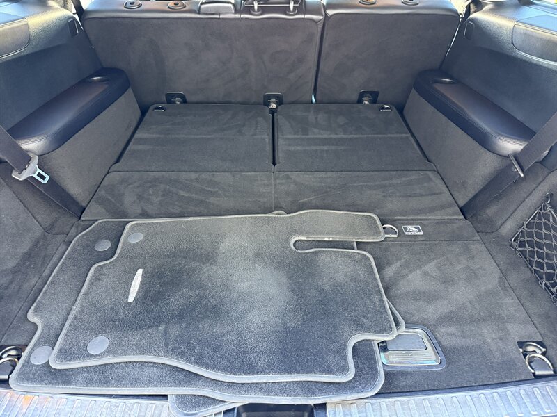 - Seating and interior trim: Three-row seating for up to seven occupants with premium black leather upholstery, supportive front seats with multiple power adjustments and memory settings, heated front seating, and split-folding second and third rows to expand cargo capacity.