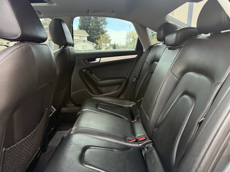 - Interior: Black leather seating surfaces with power-adjustable front seats and supportive bolstering. Leather-wrapped multifunction steering wheel with audio and phone controls and a tilt-and-telescoping column. The cabin delivers a well-trimmed, driver-focused layout typical of Audi’s Premium trim.