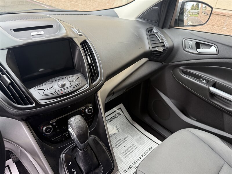 Introducing the 2016 Ford Escape SE, a versatile compact SUV designed for both efficiency and comfort. Powered by an EcoBoost 1.6L Turbo I4 engine, it delivers 178 horsepower and 184 ft-lbs of torque, ensuring a spirited driving experience. The exterior boasts a sleek Ingot Silver finish, while the interior features a stylish Charcoal Black color scheme, providing a modern and inviting atmosphere.