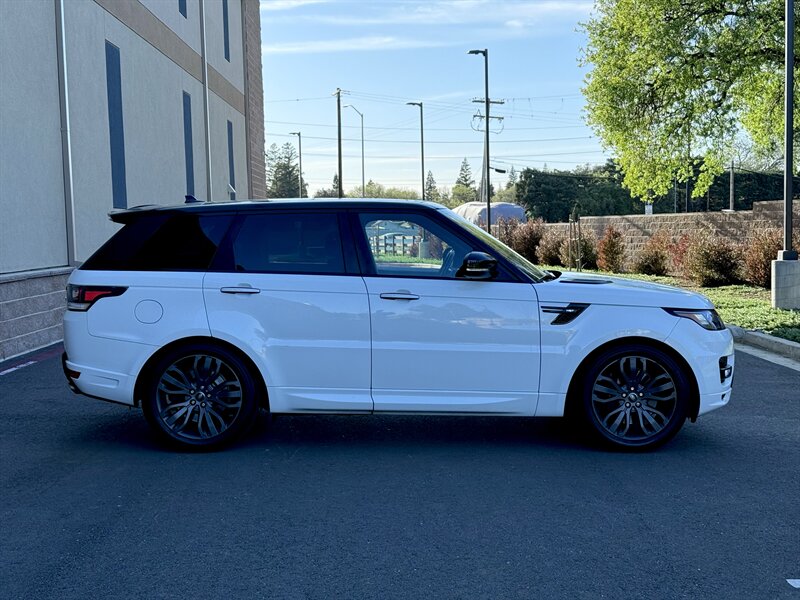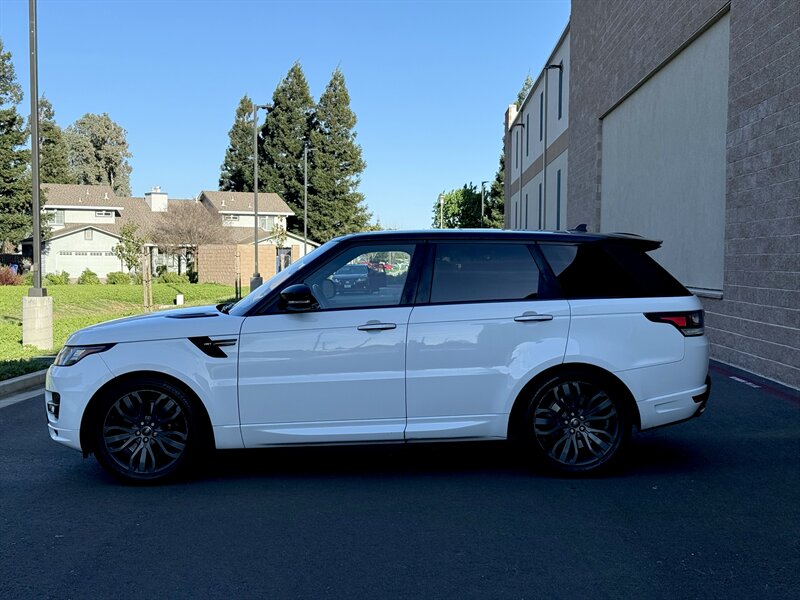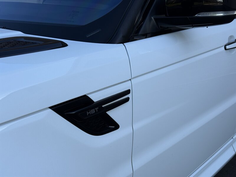 2016 Land Rover Range Rover Sport HST in Fuji White with Ebony/Lunar/Cirrus interior (Ebony headlining and Ebony/Lunar/Cirrus instrument panel). Powered by the factory 3.0L supercharged V6 (380 hp, 332 lb-ft) mated to an 8-speed automatic and permanent four-wheel drive, this example has under 99,000 miles (averaging <9,000 miles/year) and returns about 17 MPG city / 23 MPG highway; overall condition is excellent. Factory-standard equipment includes adaptive air suspension with adjustable ride height and Terrain Response driving modes, hill descent control, stability and traction control with ABS, front and side airbags, rearview camera with front and rear parking sensors, keyless entry and push-button start, leather seating with power-adjustable heated front seats and driver memory, dual-zone automatic climate control, Land Rover InControl infotainment with navigation, Bluetooth and USB connectivity, steering-wheel audio and phone controls, and cruise control.