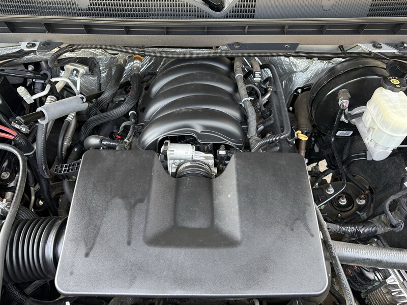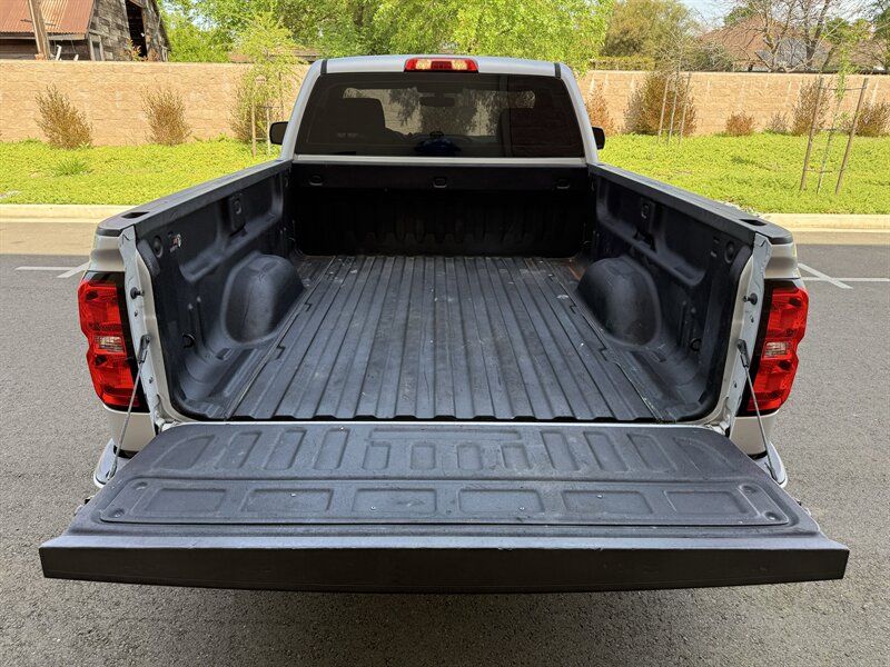 2017 Chevrolet Silverado 1500 — Silver exterior, gray cloth interior. Common factory-installed features include a standard 4.3L V6 (V8 options available), rear- or four-wheel drive layouts, automatic transmission, power windows and locks, remote keyless entry, air conditioning, cruise control, cloth seating with a fold-flat rear bench, tilt steering column, AM/FM audio with Bluetooth hands-free, USB and auxiliary inputs, and available MyLink infotainment. Safety and chassis equipment typically include anti-lock brakes (ABS), electronic stability and traction control, front and side airbags, tire pressure monitoring, and trailer sway control; wheels are steel or alloy depending on trim. EPA fuel economy: 18 MPG city / 24 MPG highway. Vehicle is in excellent overall condition.