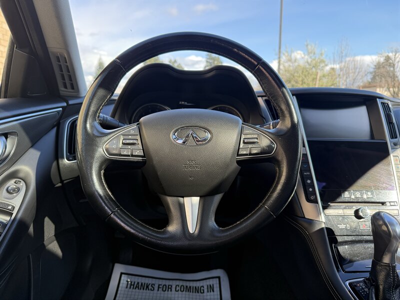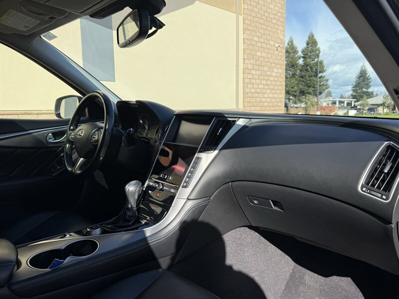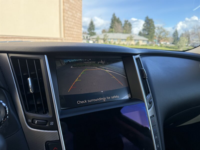 Safety and driver-assist equipment installed by the factory include a rearview camera, parking sensors, an advanced airbag system, ABS with electronic brake-force distribution, traction and stability control, tire pressure monitoring, and INFINITI’s suite of driver-assist technologies such as blind-spot awareness and lane/forward collision warning systems. These features combine to provide a secure, confidence-inspiring driving experience.