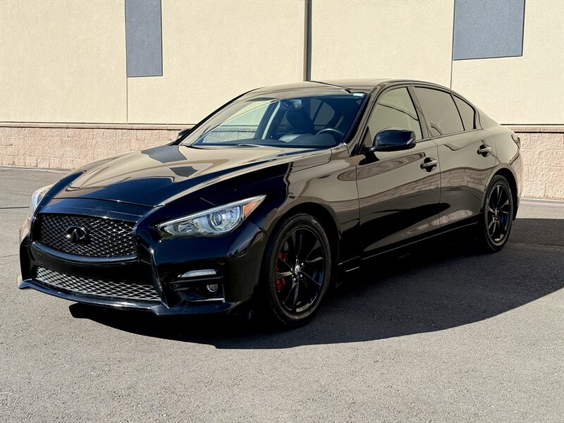 2017 INFINITI Q50 3.0T Signature Edition — Black exterior with Black leather interior. Powered by a 3.0L twin-turbo V6 producing 300 hp and 295 lb-ft of torque, paired with a responsive 7-speed automatic transmission, this Q50 delivers strong, smooth performance for everyday driving. Fuel economy is rated at approximately 20 MPG city and 29 MPG highway.