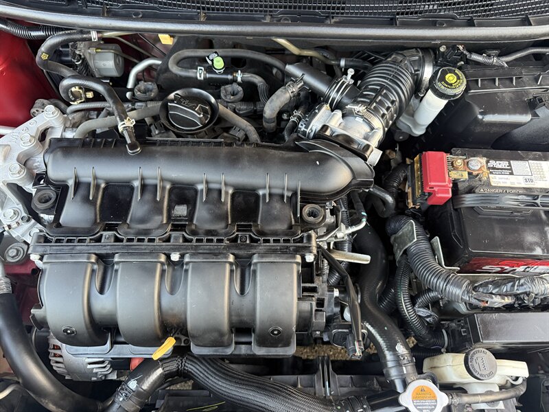 This Sentra SV offers a practical combination of efficient performance, standard safety equipment, and everyday convenience features expected from the factory. Its Red Alert exterior and black interior present a clean, well-maintained appearance consistent with the described excellent overall condition.