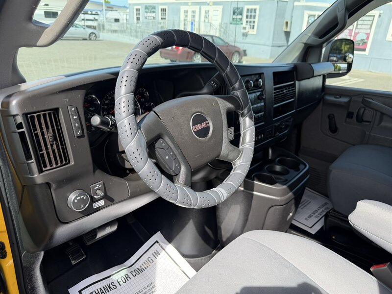 This 2019 GMC Savana 3500 is equipped with the factory 4.3-liter V6 gasoline engine and is finished in a bright Yellow exterior with a Gray cloth interior. The overall condition is excellent, showing careful maintenance and attentive use, and the vehicle comes with a clean CARFAX report verifying its history. The Savana 3500 is a purpose-built full-size van designed for heavy-duty work, commercial service, and dependable everyday utility. Below is a detailed overview of the factory-default features and the vehicle’s condition.